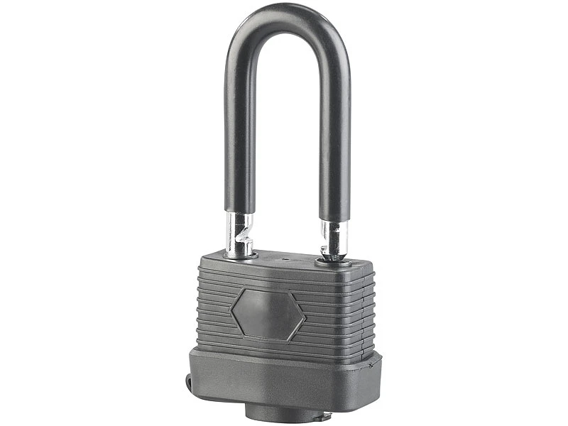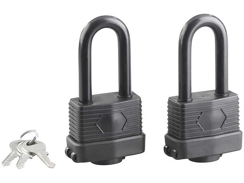 Ideal für den Außeneinsatz: Die Schlösser sind vollständig mit PVC-Kunststoff ummantelt. Das schützt sie effektiv vor Witterungseinflüssen. Zudem verhindert die Ummantelung, dass sie die soliden Metall-Gehäuse z.B. bei Wind Ihre Schuppentür verkratzen.