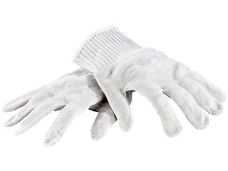 Schützen Sie sich effektiv vor Schnittverletzungen – egal ob beim Schneiden mit dem Küchenmesser oder beim Schärfen der Rasenmäherklingen: dank Ihrer neuen Nylon-Handschuhe mit eingearbeiteten Stahlfäden!