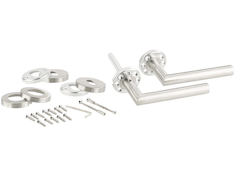 - 2 Türklinken inklusive 2 Rund-Rosetten, Vierkant-Stift, 2 Zylinder-Rosetten, 2 Buntbart-Rosetten, Montage-Material und deutscher Anleitung – Türbeschlag für Zimmertür – Außerdem relevant oder passend zu: WC