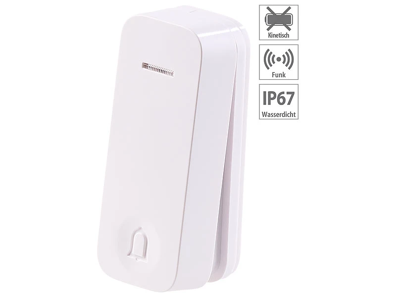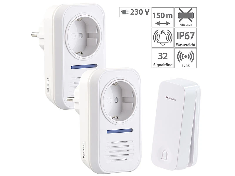 CASAcontrol Funk Türklingel:2 Steckdosen-Funkklingeln & Kinetischer Funk-Taster; 230-V-Steckdose