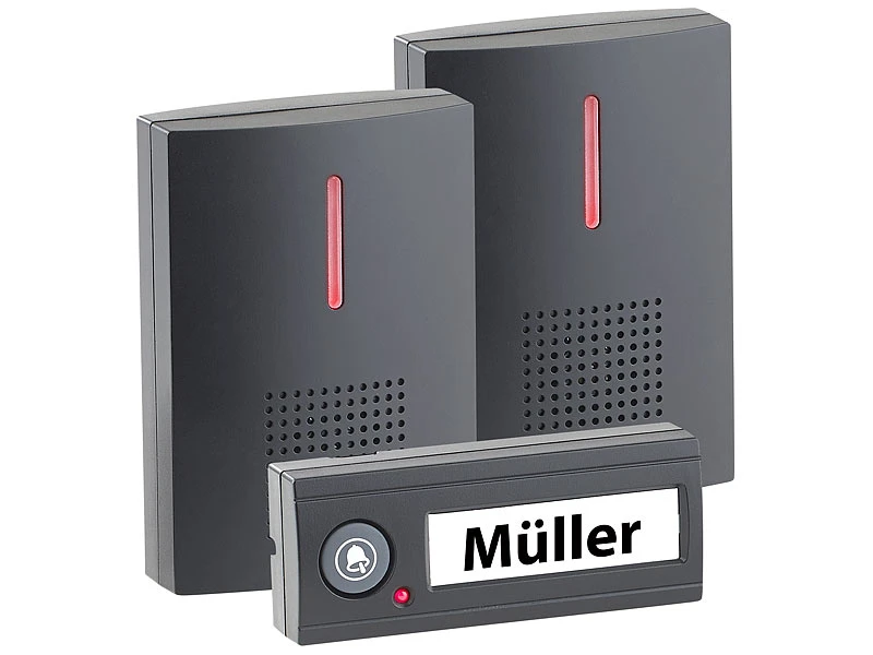 CASAcontrol Funkglocke:Kabellose Funk-Türklingel Mit 2 Empfängern (Licht & Ton), 100 M, IPX4