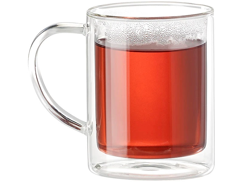 Doppelwandig isoliert: Der Raum zwischen den Glaswänden sorgt dafür, dass Heißes länger heiß und Kaltes länger kalt bleibt. Die Glas-Außenseite bleibt angenehm kühl, so dass keine Gefahr besteht, sich die Finger zu verbrennen. Beim Einfüllen von kalten Getränken bildet sich zudem kein Kondensat an der Außenseite. Optisch entsteht der schöne Effekt, als würde Ihr Tee schweben.