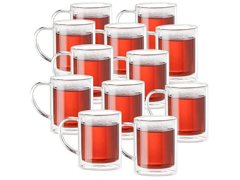 - Set aus 12 doppelwandigen Teegläsern mit Henkel