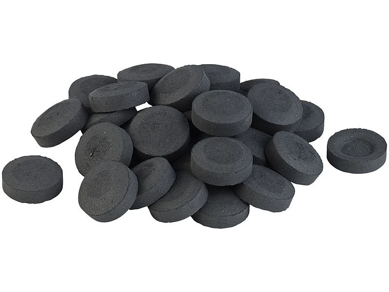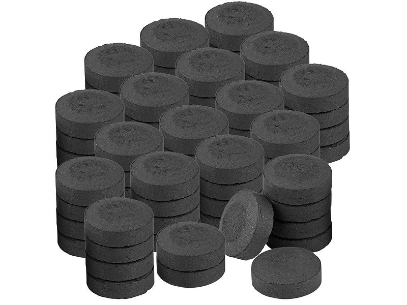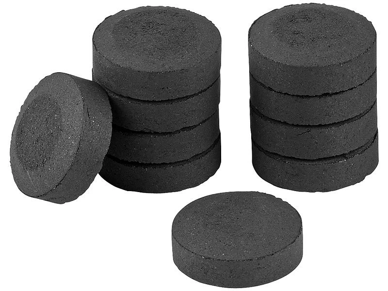 - Maße je Brikett (Ø x H): 32 x 10 mm, Gesamtgewicht: 2,25 kg – Kohle mit Kohleanzünder – Außerdem relevant oder passend zu: selbstzündend