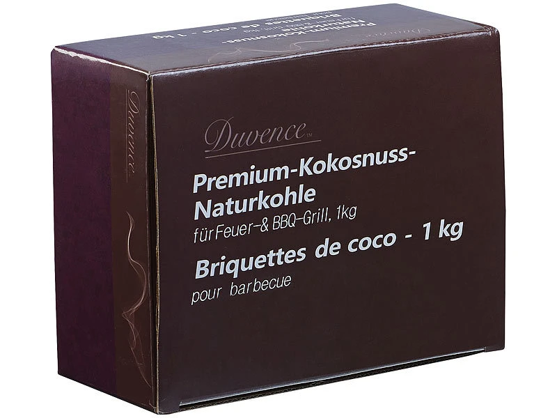 - Zusammensetzung: Kokoskohle (60 %), Bambuskohle (35 %), Kohleanzünder (5 %)