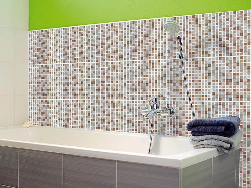 Geben Sie Ihren Fliesen eine besondere Note: Bringen Sie individuelles Design in Bad, Küche & Co. Dank 3D-Mosaik-„Steinchen“ aus Vinyl wirken die Aufkleber fast wie echte Fliesen.