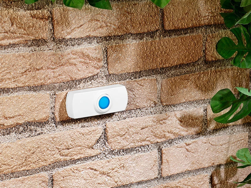 - Wasserfester Klingelknopf (IP44), kompakt und leicht, zum Mitnehmen oder zum Fixieren (per Klebeband empfohlen, bitte dazu bestellen)