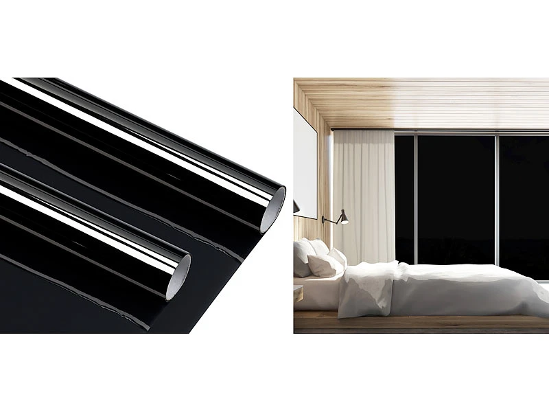 - Zwei dunkle Folien mit Sichtschutz, UV-Schutz und Wärmeisolation