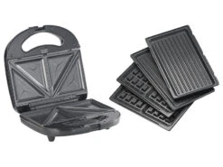 Rosenstein & Söhne Sandwichtoaster:3in1-Sandwichmaker, Waffeleisen & Tischgrill, Anti-Haft, 800 Watt