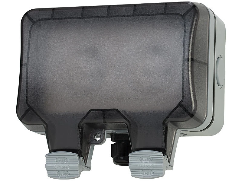 - Robustes, wetterfestes Gehäuse mit Klappdeckel