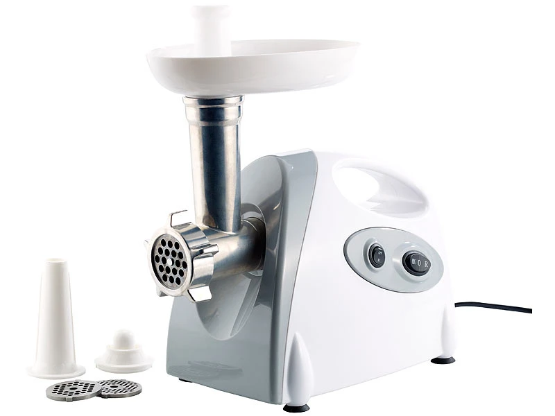 - Fleischwolf inklusive 3 Lochscheiben, Befestigungsring, Kebbe-Aufsatz, Wurstaufsatz, Stopfer, Einfülltablett und deutscher Anleitung – Hackfleischmaschine – Außerdem relevant oder passend zu: Wolf, Brot, Hack, Wurst, Pasta, Schneiden, elektrisch, Wurstfüller, Zerkleinerer, Küchemaschine, Elektrische Nudelmaschine