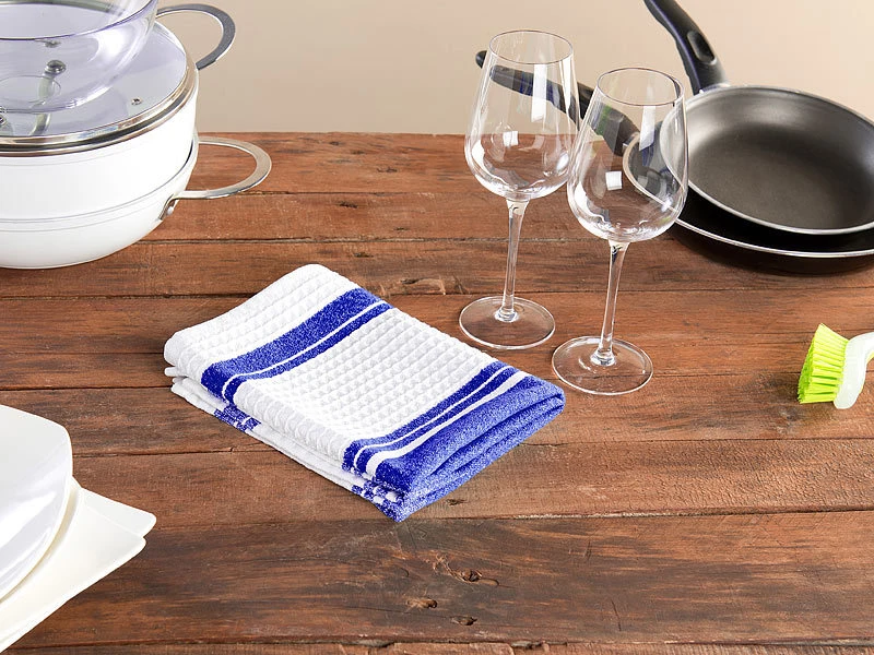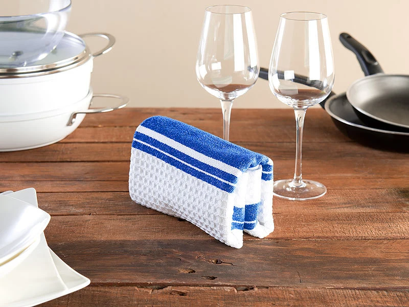 Lassen Sie Ihr Geschirr strahlen: Dank hochwertiger Mikrofaser und extra-saugfähiger 3D-Waffelpiqué-Struktur trocken Sie Teller, Tassen & Co. besonders schnell ab. Ideal auch zum fusselfreien Polieren von Gläsern.