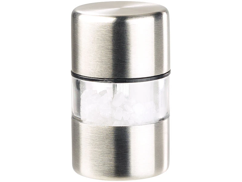 Edles Design im Mini-Format: Die Kombination aus Edelstahl und Acrylglas wirkt elegant und passt auf jeden Tisch. Dank extrakompakter Maße sorgen Ihre neuen Pfeffer- und Salzmühlen auch beim Picknick oder Camping für den richtigen Geschmack.