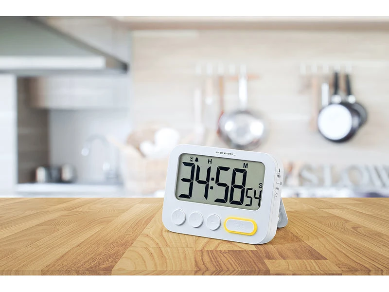 Zugleich praktische Küchenuhr: Im normalen Ruhemodus zeigen Ihnen Ihre vielseitigen Kurzzeitwecker immer die aktuelle Uhrzeit an. So haben Sie im Blick, wann es Zeit zum Kochen wird oder die Kinder von der Schule nach Hause kommen.
