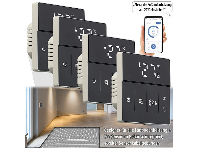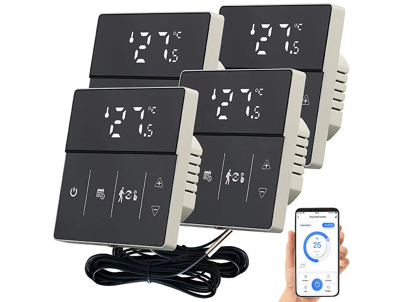 - 4 WLAN-Thermostate je inklusive externem Sensor, Montagematerial und deutscher Anleitung – Thermostat Digital WiFi – Außerdem relevant oder passend zu: Tablet