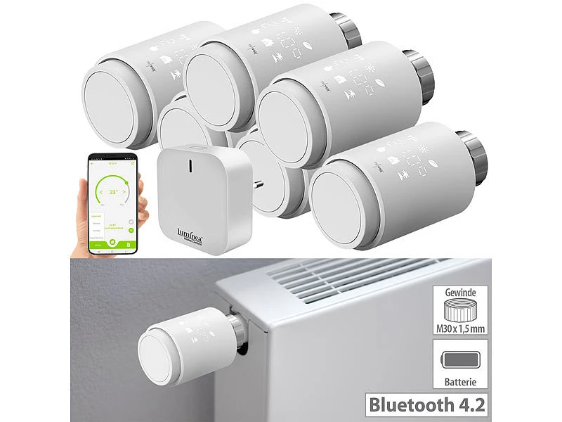 - 6 Heizkörper-Thermostate inklusive 36 Adaptern, WLAN-Gateway und deutscher Anleitung