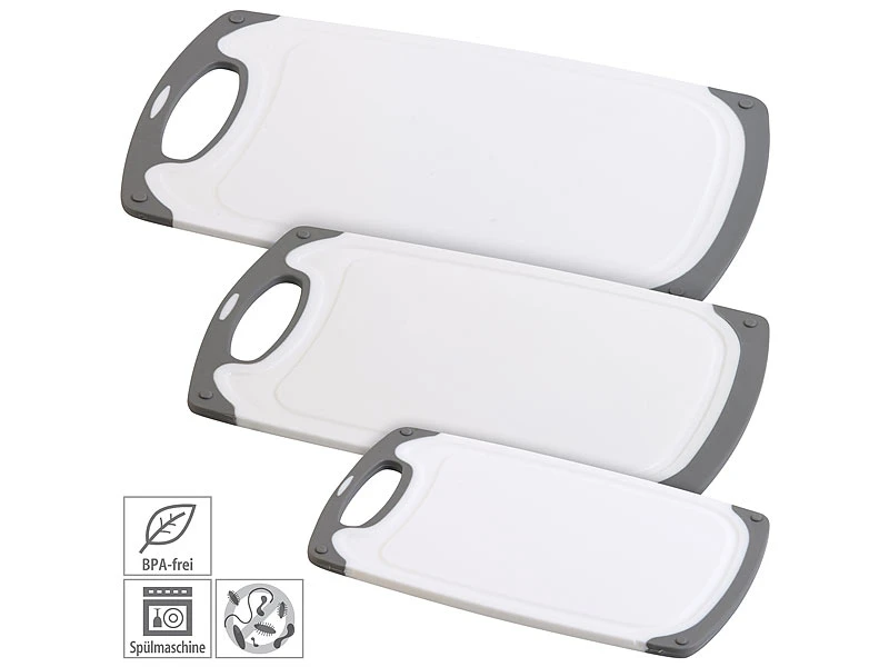 - 3er-Set Schneidebretter mit antibakterieller Kunststoffoberfläche