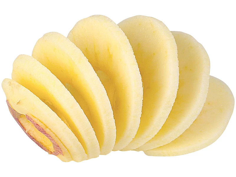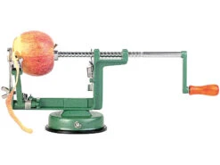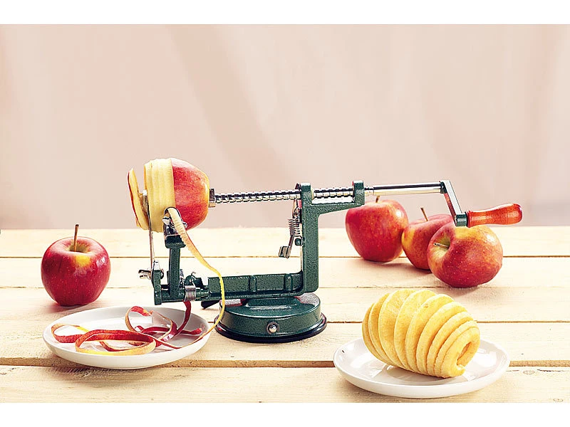 In nur wenigen Sekunden liegt ein perfekt geschälter und in gleichmäßige Scheiben geschnittener Apfel vor Ihnen – ohne Kerne!