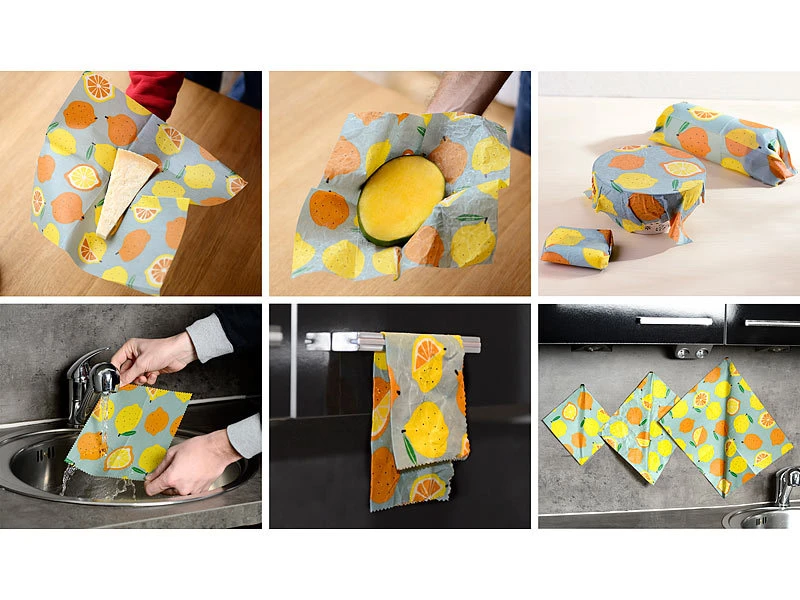 Auf umweltfreundliche Art Lebensmittel verpacken: Ab jetzt vermeiden Sie Kunststoffdosen und Plastikfolie. Mit Ihren neuen Bienenwachstüchern halten Sie Käse, Obst, Gemüse, Brot, Snacks u.v.m. frisch – und das völlig nachhaltig!