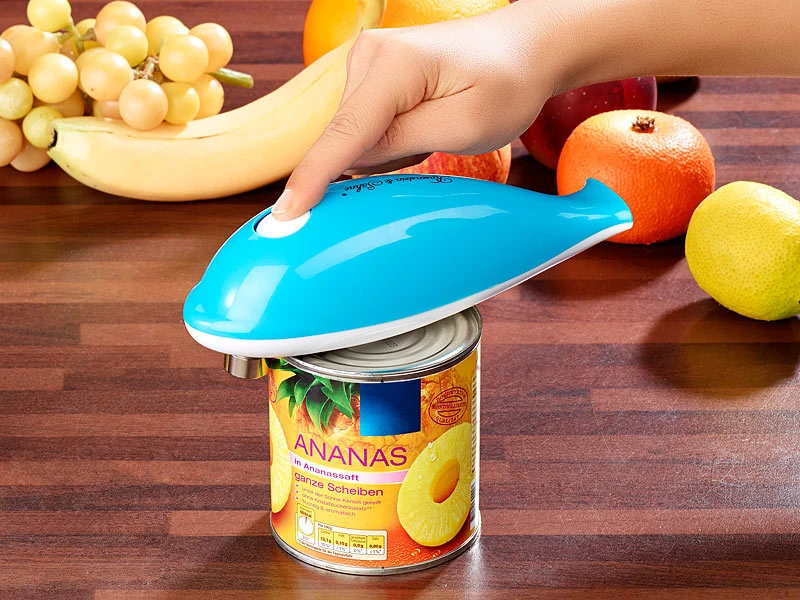 Mit seinem ergonomischen Delphin-Design liegt der Dosenöffner besonders gut in der Hand. Und dank kabellosem Batteriebetrieb sind Sie besonders flexibel. Toll: Im Öffner ist ein extra starker Magnet integriert, damit heben Sie den Deckel ganz bequem ab.
