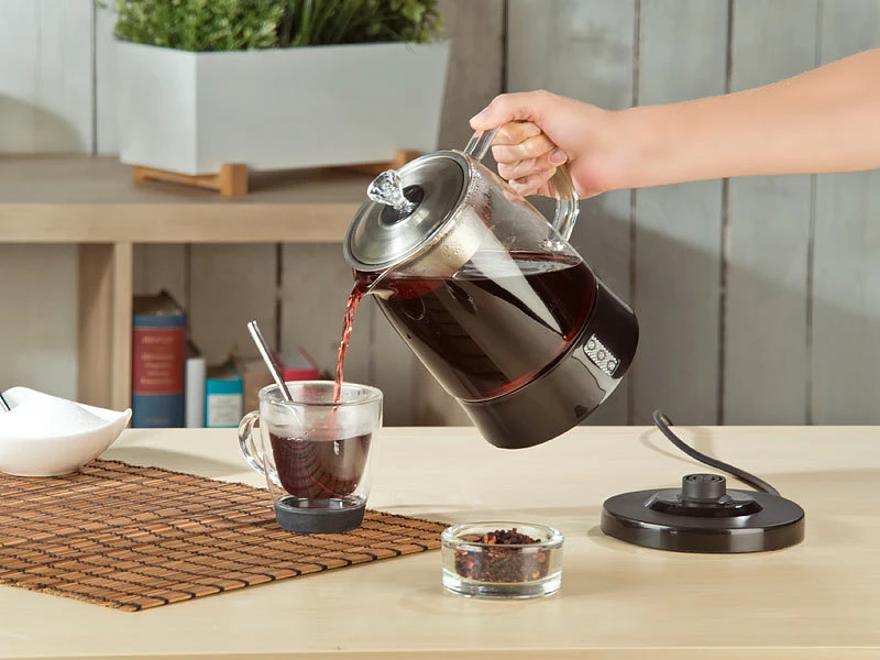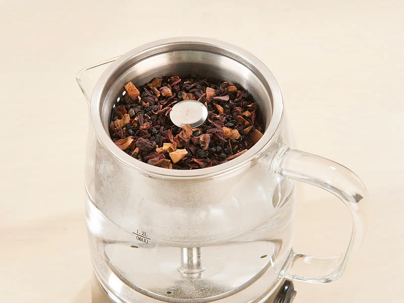 Hier bekommen Sie, was Sie wollen: einfach nur heißes Wasser oder gleich den fertigen Tee! Setzen Sie das Edelstahl-Sieb einfach in die Kanne ein und füllen es mit Ihrem Lieblings-Tee – egal ob schwarz, Rooibos oder Kräuter. Dank Glaskanne brauchen Sie ihn zum Servieren nicht einmal umzufüllen!
