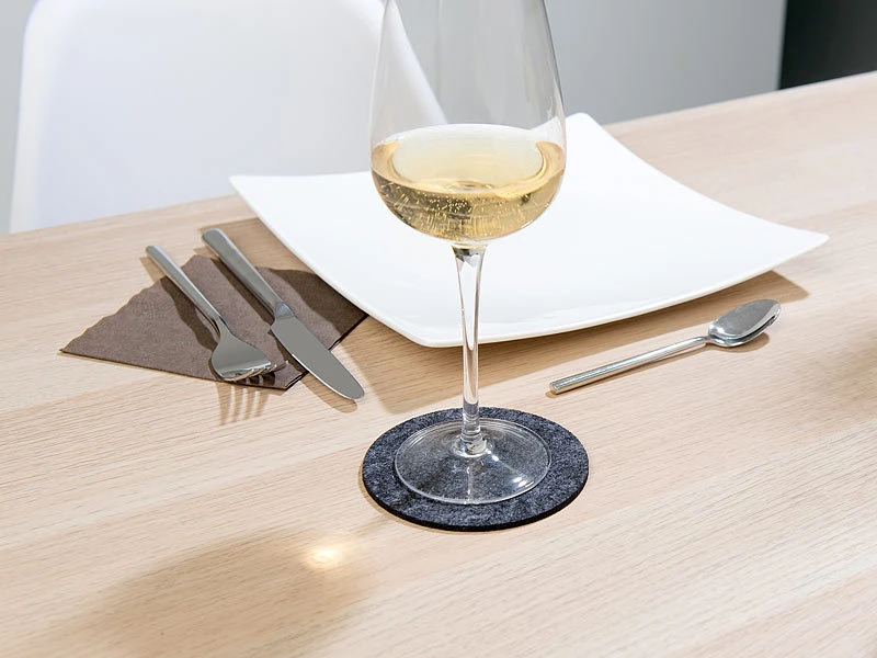 Schlichte Eleganz: Gestalten Sie mit den Filz-Untersetzern ein gemütliches und dennoch modernes Ambiente an Ihrem Esstisch. Mit ihrem schlichten Aussehen passen sich die Untersetzer jedem Anlass perfekt an.
