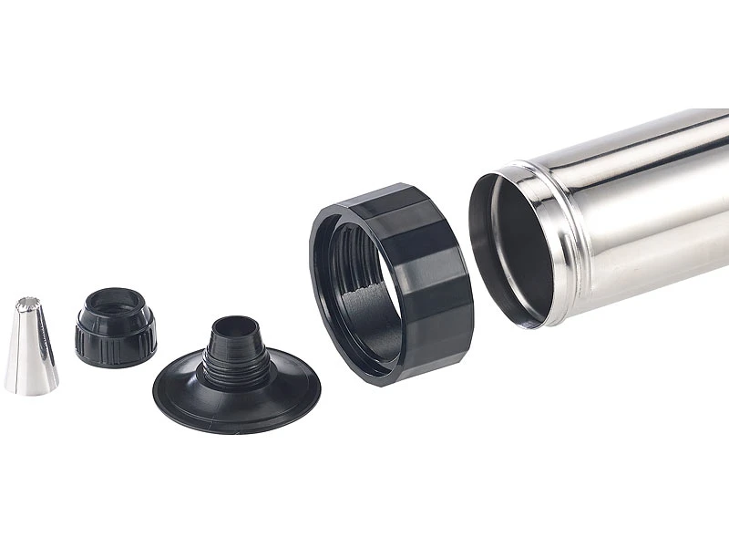 - Material Korpus und Spritztüllen: Edelstahl, Formscheiben: Aluminium