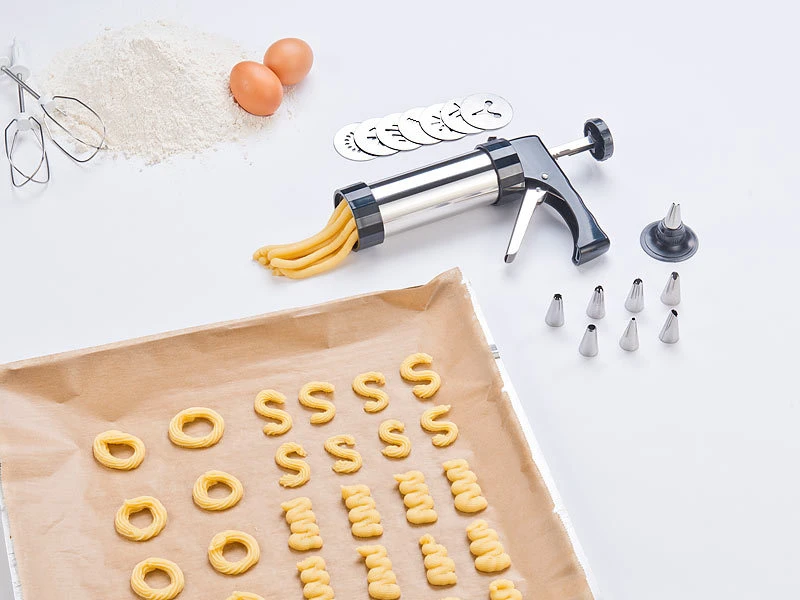 - Edelstahl-Gebäckpresse & Teigspritze für Spritzgebäck, Kekse u.v.m.