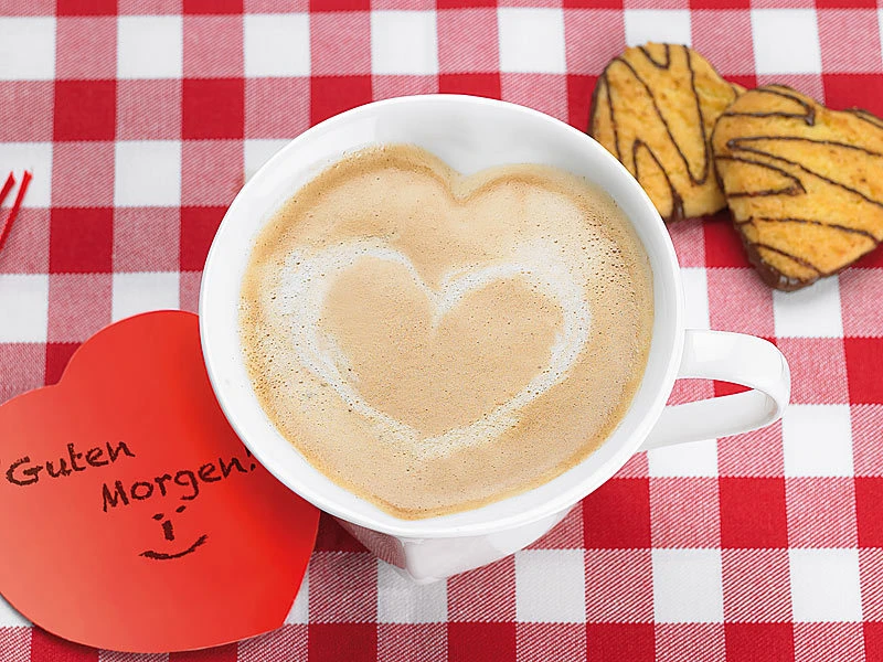 - Getränk bildet eine Herzform an der Oberfläche: Besonders wirkungsvoll z.B. mit Kaffee oder Schwarztee