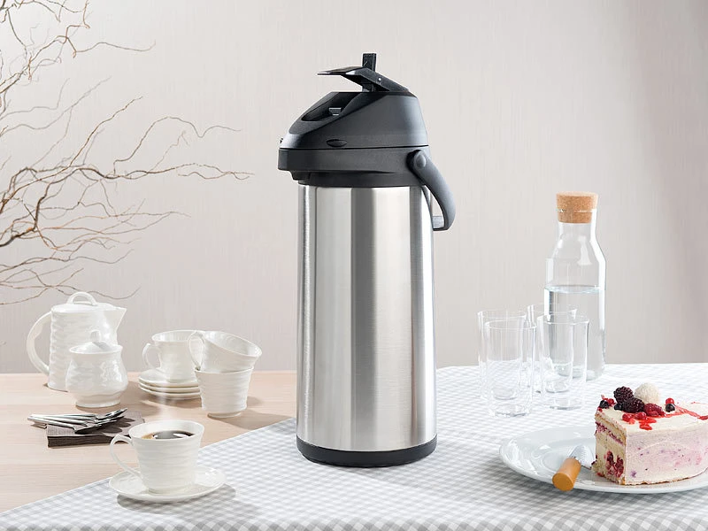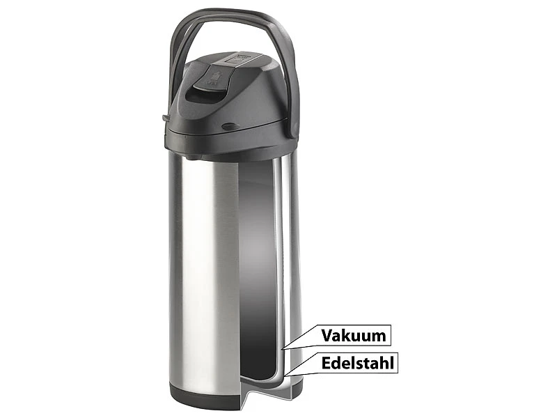Bequeme Handhabung: Durch die praktische Einhand-Pump-Funktion ist das Bedienen der Kannen ein Kinderspiel. Schon mit wenigen Pumpstößen ist Ihre Tasse gefüllt. Und mit dem stabilen Tragegriff transportieren Sie das Behältnis immer dorthin, wo Sie es brauchen.