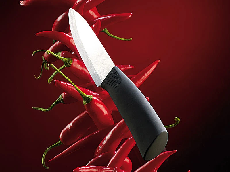 Weitere Pluspunkte: Keramik ist wesentlich leichter als Stahl. Zudem ist die Klinge extrem hart, hitzeresistent sowie absolut geruchs- und geschmacksneutral.