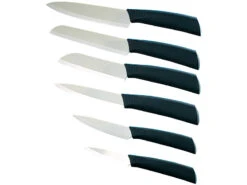 - 6er-Komplett-Set: Schälmesser (8 cm Klinge), Obst- & Gemüsemesser (10,5 cm Klinge), Universalmesser (13 cm Klinge), Santokumesser (12 cm Klinge), Kochmesser (15 cm Klinge) und Küchenmesser (15 cm Klinge)