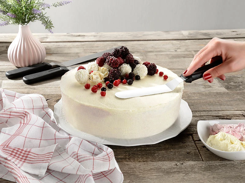 Werden Sie im Handumdrehen zum Pâtissier: Denn jetzt haben Sie für jeden Einsatz das richtige Werkzeug zur Hand! Schon verteilen und verstreichen Sie wie ein Konditormeister Teig, Creme, Sahne und Schokolade glatt – für perfekte Ergebnisse.