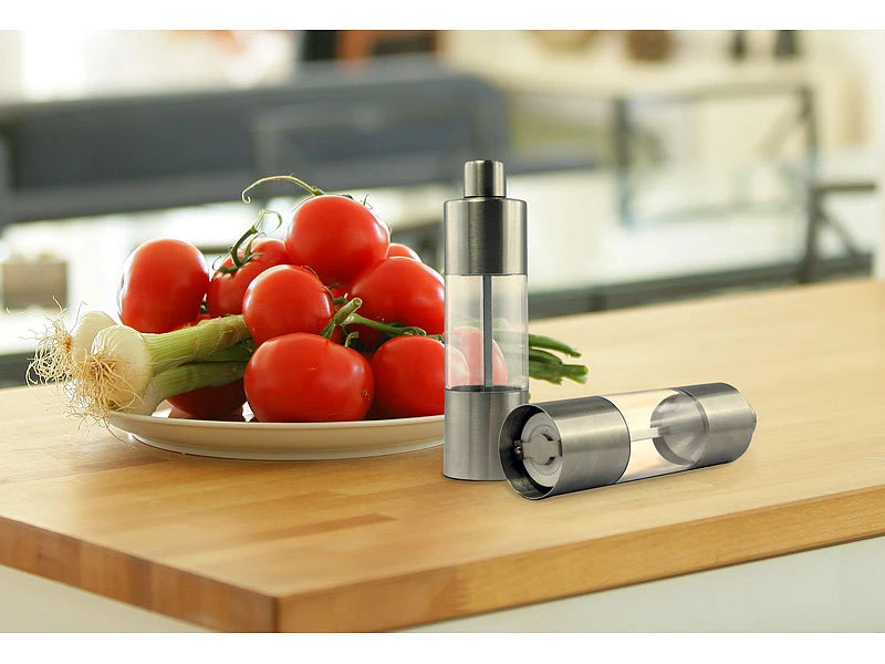 Ob festlich gedeckte Tafel für ein Mehr-Gänge-Menü oder schlichtes Abendbrot: Mit diesen edlen Gewürzmühlen im 2er-Set trimmen Sie jetzt alle Speisen ganz einfach auf Ihren persönlichen Geschmack.
