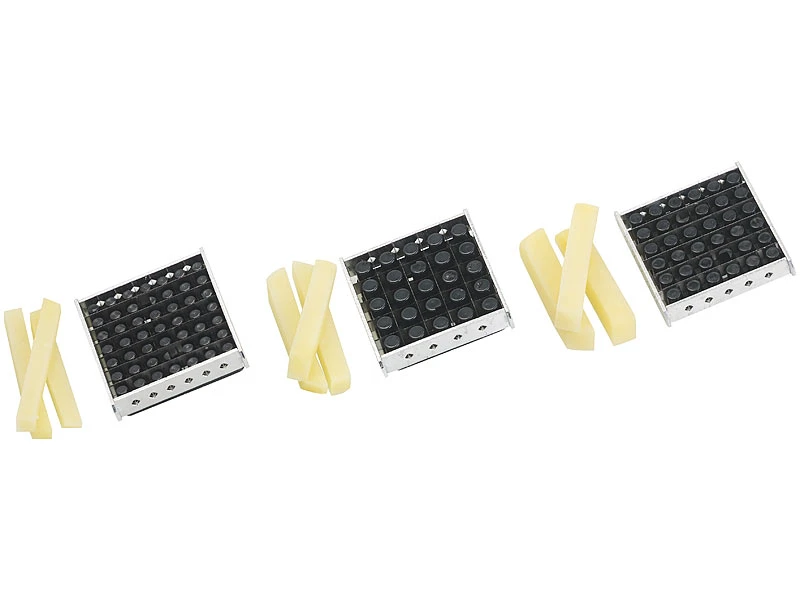 - 3 Schneide-Gitter für unterschiedliche Stäbchen-Dicke, Raster: 13 x 13 mm, 10,5 x 10,5 mm und 9 x 9 mm