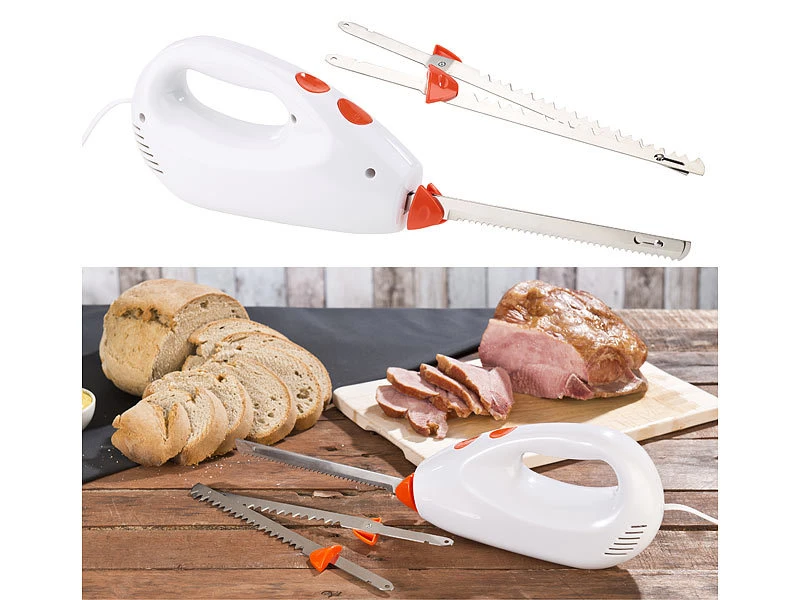 - Elektromesser inklusive 2 Edelstahl-Doppelklingen (fein und grob) mit Klingenschutz und deutscher Anleitung – Elektrisches Küchen-Messer – Außerdem relevant oder passend zu: Döner, Schneidemaschine