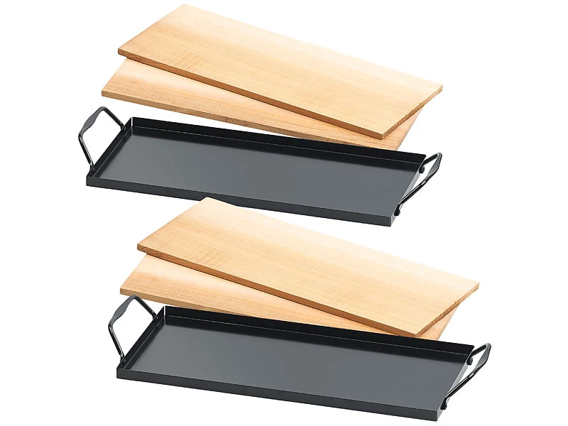 Einfach anzuwenden, mehrfach wiederverwendbar: Legen Sie die Grillbretter in Wasser, Bier oder Wein ein. Anschließend garen Sie Ihr Grillgut direkt auf dem feuchtem Zedernholz. Dadurch erhält es eine verführerische Räucher-Note – ganz einfach auf dem Gas- oder Holzkohle-Grill!