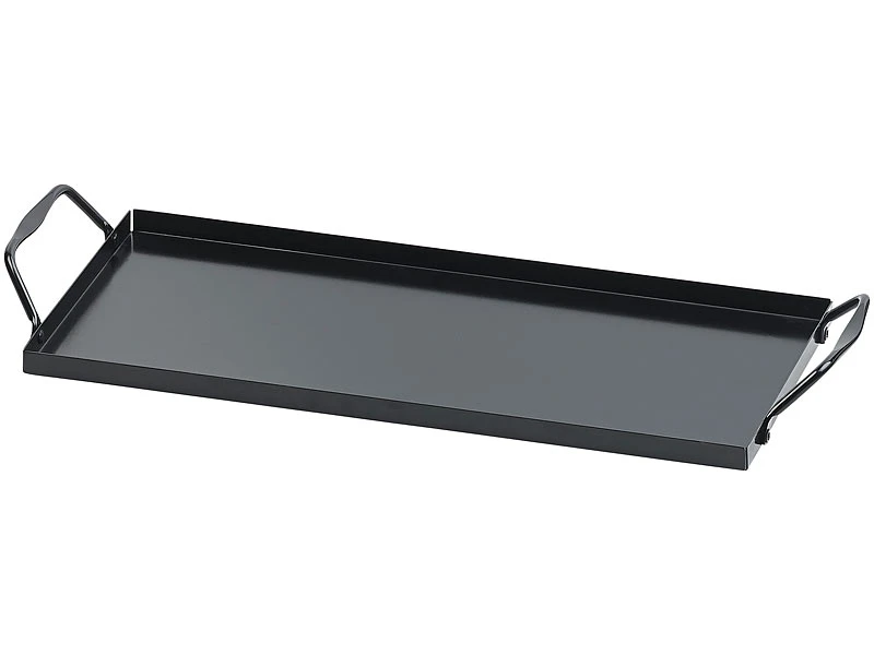 - Praktischer Metallrahmen mit seitlichen Griffen für einfache Handhabung, solide Unterseite verhindert Anbrennen der Grillbretter
