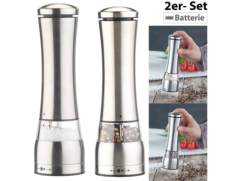 - Elektrische Mühle für Salz, Pfeffer und Gewürze im 2er-Set „Emely & Emely“