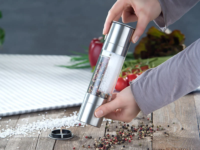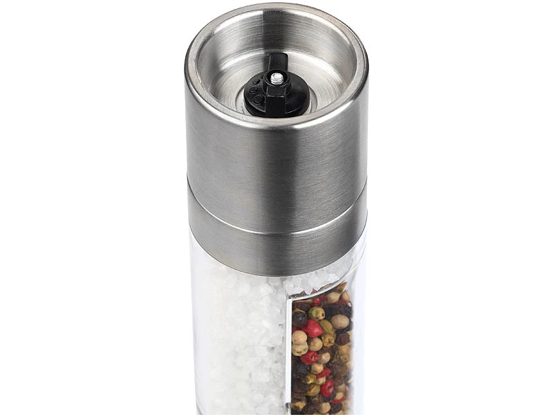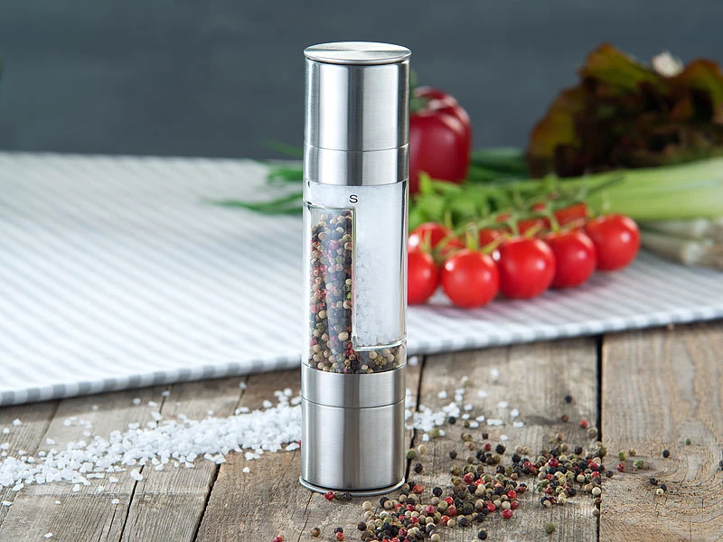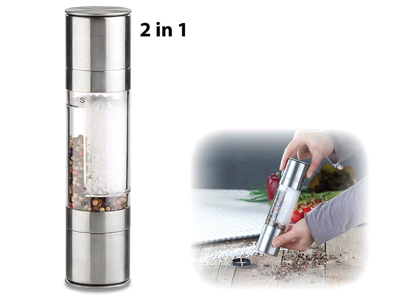 - 2in1-Salz- und Pfeffermühle inklusive Deckel und deutscher Anleitung – Mini Salz Pfeffermühle – Außerdem relevant oder passend zu: Salat, Küche, Reise, Gewürz, Kochen, manuell, Camping, Gewürzregal, Doppelmühle, Mitbringsel, Gewürzgläser, Salzmühle einem