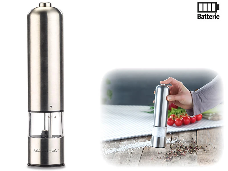 - Stufenlos einstellbares Keramikmahlwerk: mahlt Salz, Pfeffer und Gewürzmischungen von grob bis fein
