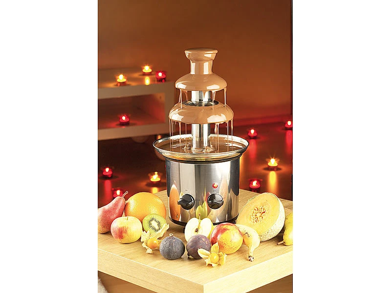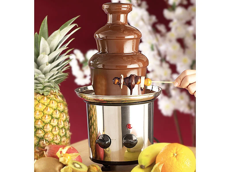 Mit dem Schokoladen-Brunnen bieten Sie Ihren Gästen auf Ihrer nächsten Party ein absolutes Highlight. Zum Eindippen in die süßeste Verführung seit Erfindung des Fondues ist alles erlaubt, was das Herz begehrt.