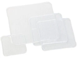 - 4er-Set Mehrweg-Frischhaltefolien: 1x klein ( 9,5 x 9,5 cm), 2x mittel (14 x 14 cm), 1x groß (19 x 19 cm)