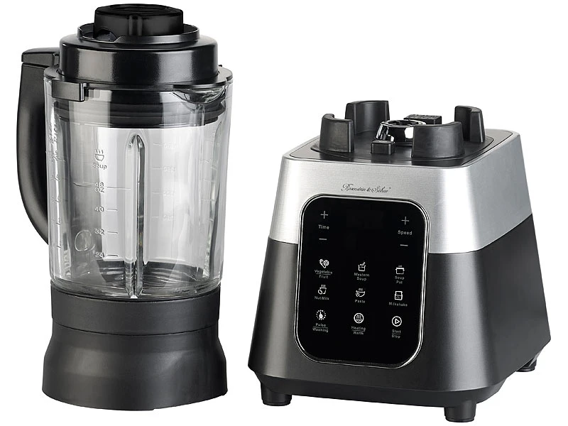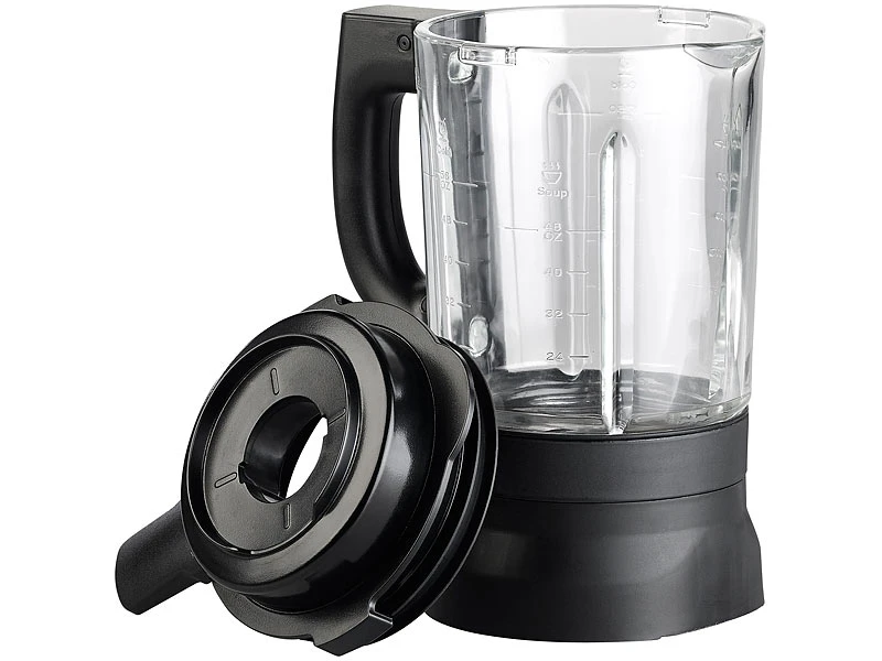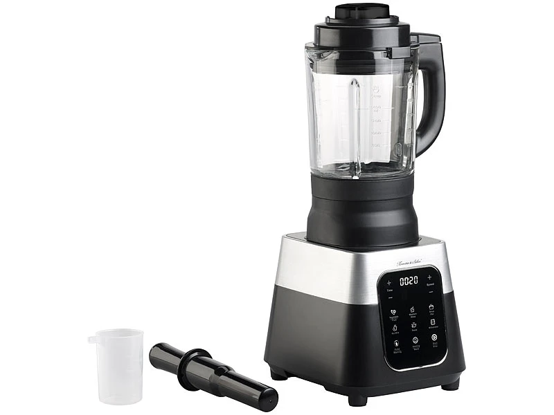 - Mixer-Basis inklusive Mixbecher mit Klingen, Deckel, Messbecher, Einfüll-Stößel, Reinigungsbürste und deutscher Anleitung mit Rezept-Ideen – Standmixer mit Kochfunktion – Außerdem relevant oder passend zu: Pro, Bar, Milch, Messer, Becher, Shaker, Kochen, Backen, Automat, Heizung, Kochtopf, Smoothie, Cocktail, Stabmixer, Handmixer, Sojamilch, Ice Crusher, Küchenhelfer, Zerkleinerer, Küchenaustattung