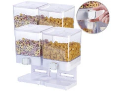 Immer frische Cerealien: Befüllen Sie die Doppel-Spender mit Ihren Lieblingssnacks! Müsli, Cornflakes, Süßigkeiten & Co. bleiben darin länger genießbar und lassen sich kinderleicht portionieren. Eine Drehung am Knopf genügt, um 30 g des Inhalts aus den Behältern zu bekommen.