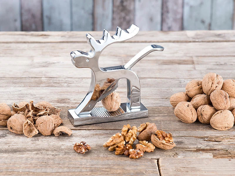 Ein attraktiver Blickfang: Dank seines eleganten Designs und der glänzenden Chrom-Oberfläche ist der Elch-Nussknacker ein schönes Deko-Accessoire. Ideal auch als Geschenk-Idee für Familie und Freunde!