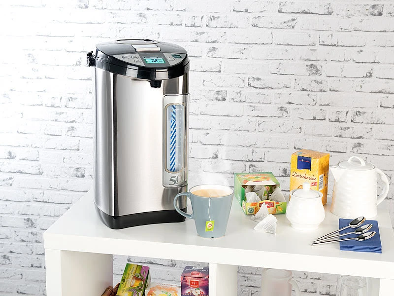 Heißes Wasser genau nach Ihrem Bedarf, für Tee und andere Heißgetränke. Der großzügige Wassertank fasst bis zu 5 Liter. Das ist ideal fürs Büro und größere Veranstaltungen.