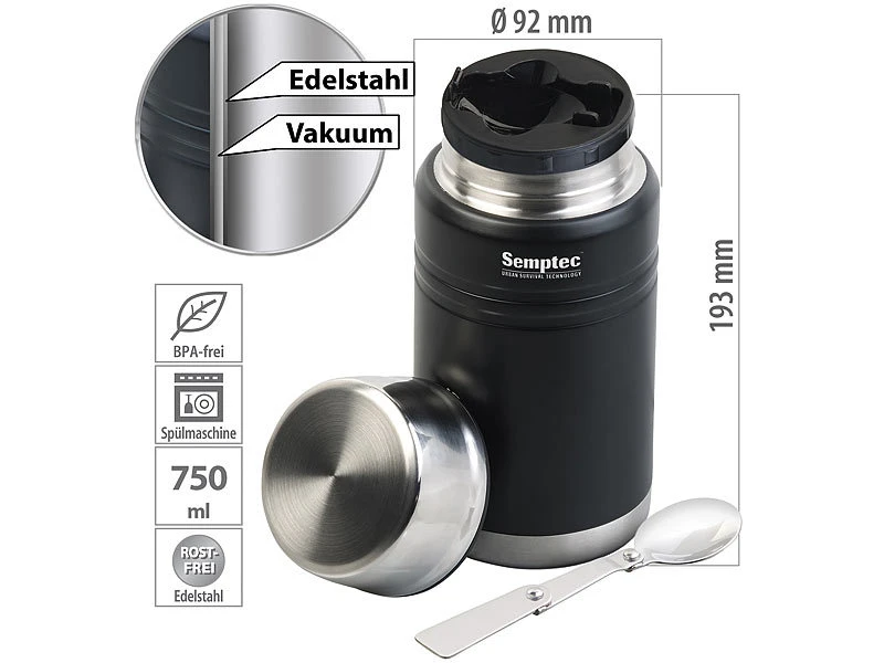 - Vakuum-Thermobecher inklusive faltbarem Löffel und deutscher Anleitung – Warmhalte-Becher – Außerdem relevant oder passend zu: Gläser, Tassen, Outdoor, Smoothie, Schüssel, Espresso, Picknick, Flaschenhalter