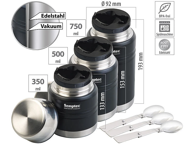 - Doppelwandig mit Vakuum-Technologie: hält Heißes und Kaltes bis zu 8 Stunden warm oder 14 Stunden kühl
