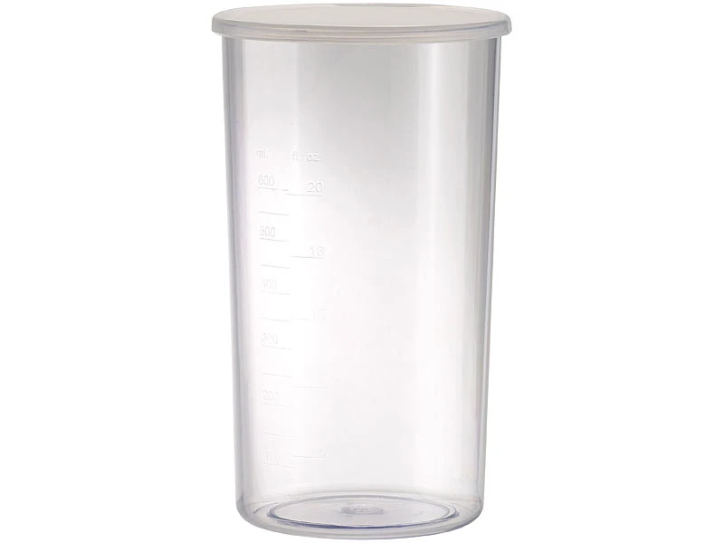 - Inklusive Mixbecher mit Deckel, skaliert bis 600 ml